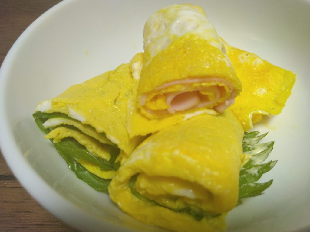 大葉とハムを巻いてみましたが、薄すぎるため、まとまらない感じがして、少し失敗してしまいました😅💦