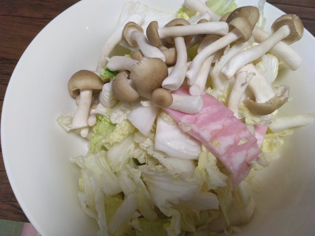 また①と②は最近スーパー でもカット野菜のコーナーに置いてあるので、袋を開けてお皿に入れるだけでもOK(洗わずOKと書いてあります)