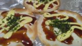 2.塩コショウを二振りずつぐらい入れて、水を200ml入れます。コンソメ顆粒を小さじ2入れて、4~5分くらい煮込み、耐熱皿に入れます。上にチーズとバゲットをのせ、オーブントースターで1分。