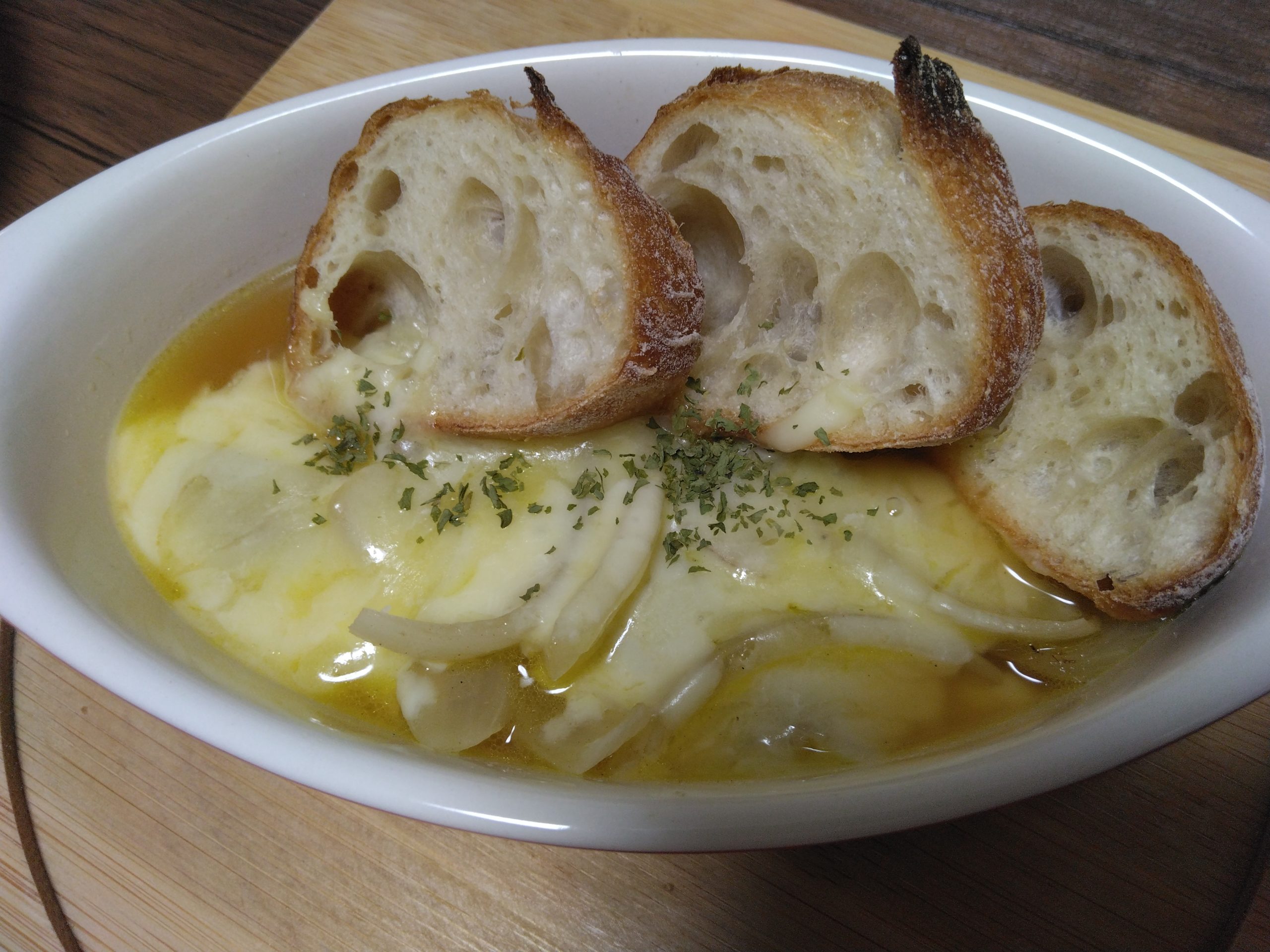 インスタでオニオングラタンスープの写真を見て食べたくなり、作ってみました😊
