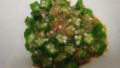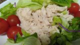 深めの耐熱皿に野菜を入れた後、オリーブオイルと塩を入れて、かき混ぜます。