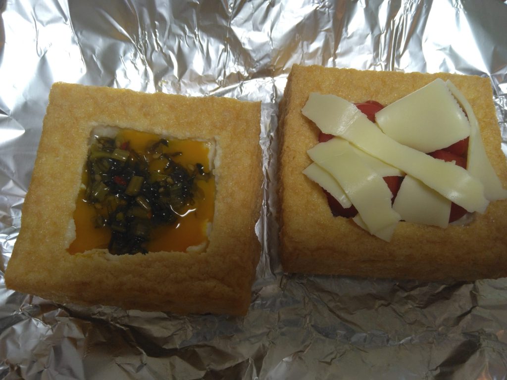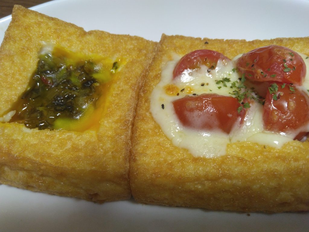 動画で厚揚げをくり抜き、卵を入れて焼いているのを見て、作ってみたくなった私。