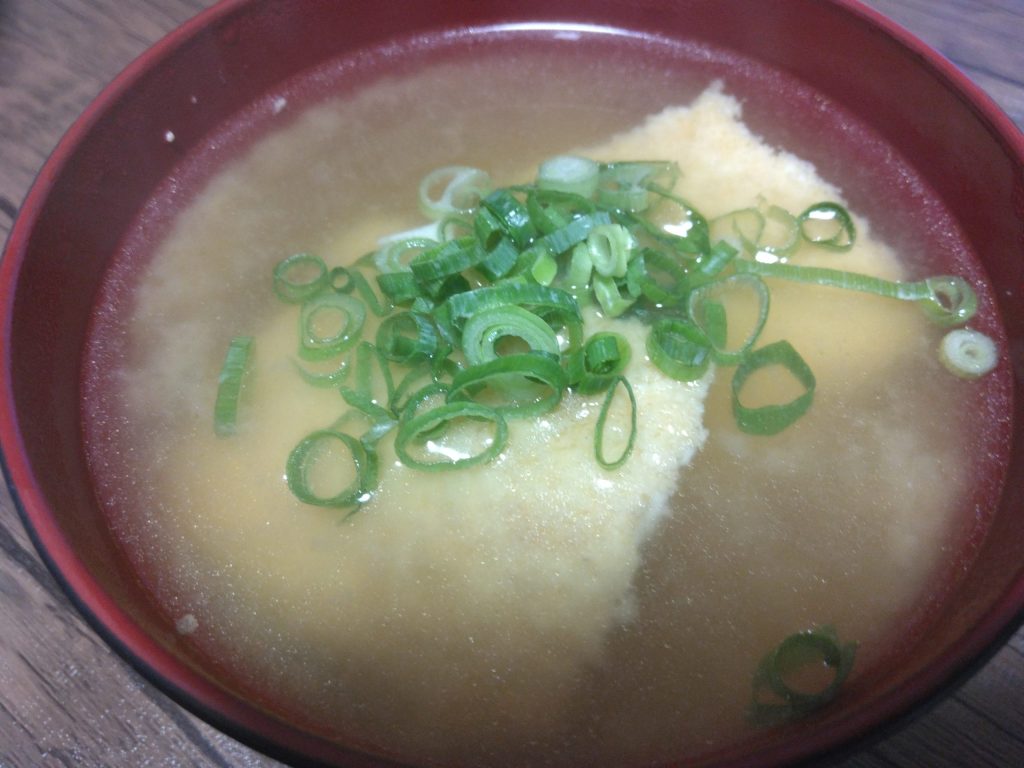 くりぬいた厚揚げは、インスタントみそ汁の上にのせました。